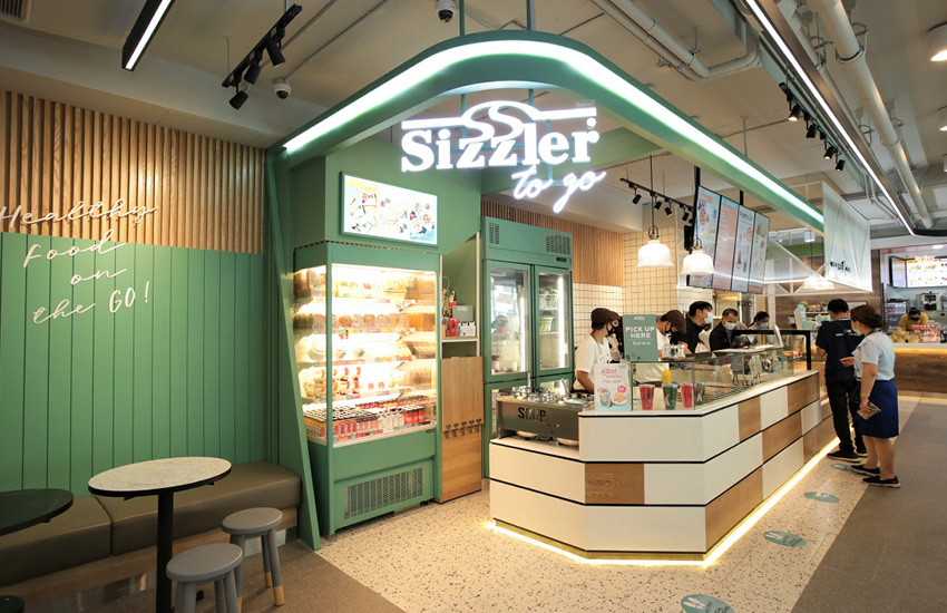 Sizzler จึงแก้โจทย์นี้ ร้าน Sizzler To Go สาขาล่าสุดที่เปิดในโรงพยาบาลกรุงเทพ ซึ่งเป็นอีกหนึ่งทำเลที่แบรนด์เล็งไว้สักพักแล้ว สาขานี้จะไม่เหมือนกับที่อื่น นอกจากจะมีพื้นที่กว้างแล้ว ยังเป็นลักษณะของศูนย์อาหาร เพราะภายในร้านนอกจากจะมี Sizzler แล้ว ยังมี Burger King และ The Coffee Club ซึ่งใช้โต๊ะและเก้าอี้สำหรับนั่งทานเป็นส่วนกลางร่วมกัน