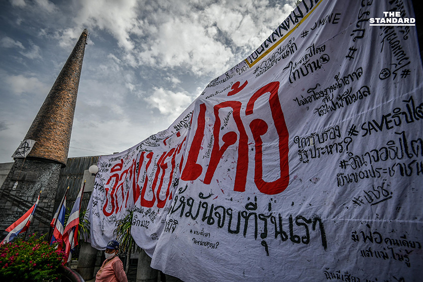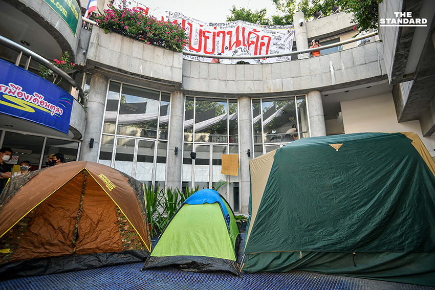 ในส่วนของบรรยากาศการจัดกิจกรรม มีการกางเต็นท์ จัดเตรียมพื้นที่สำหรับทำกิจกรรม โดยแยกเป็นสัดส่วน โดยโซนทำกิจกรรมบริเวณอนุสรณ์สถาน 14 ตุลา มีการนำป้ายผ้าเขียนข้อความมาติดตั้งแต่ทางเข้า เช่น ป้าย ‘เผด็จการจงพินาศ ประชาธิปไตยจงเจริญ’ ป้าย ‘มหาวิทยาลัยเป็นของนิสิต นักศึกษา ประชาชน’ และ ‘อีสานบ่ย่านเด้อ #ให้มันจบที่รุ่นเรา’ รวมถึงป้ายข้อความ ‘Stop Harassing People หยุดคุกคามประชาชน’