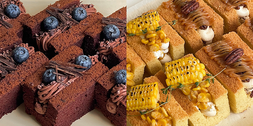 สำหรับสายหวาน ก็มี Smorgas Chocolaty Chocolate (150 บาท) ที่รวบรวมความเข้มข้นของช็อกโกแลตเอาไว้ในทุกส่วนของขนมชิ้นนี้ ไม่ว่าจะเป็นชิฟฟอนช็อกโกแลต ครีมสดช็อกโกแลต เพิ่มเท็กซ์เจอร์เคี้ยวกรุบด้วยคาเคานิบส์และช็อกโกแลตสับ กินคู่กับบลูเบอร์รีสดเพื่อตัดให้รสชาติไม่ขมจนเกินไป และ Smorgas Pecan Salted Caramel (140 บาท) สำหรับคนรักถั่วพีแคน ชิ้นนี้เป็นชิฟฟอนวานิลาและครีมสดที่ผสมคาราเมลลงไปเพื่อเพิ่มความหวาน มีถั่วพีแคนบดเพื่อเพิ่มเท็กซ์เจอร์ ท็อปด้วยพีแคนอบเคลือบซอสคาราเมลชิ้นโต