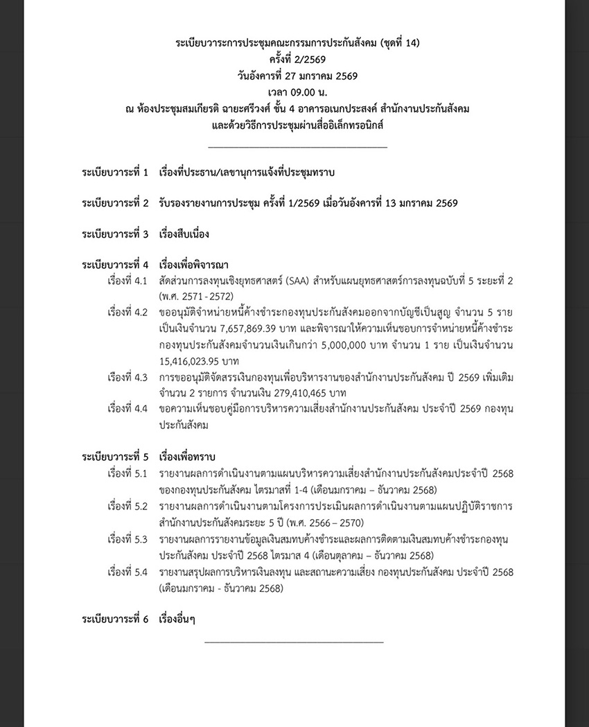 ภาพ : เปิดวาระสำคัญประชุมบอร์ดประกันสังคม วันที่ 27 มกราคม 2569
