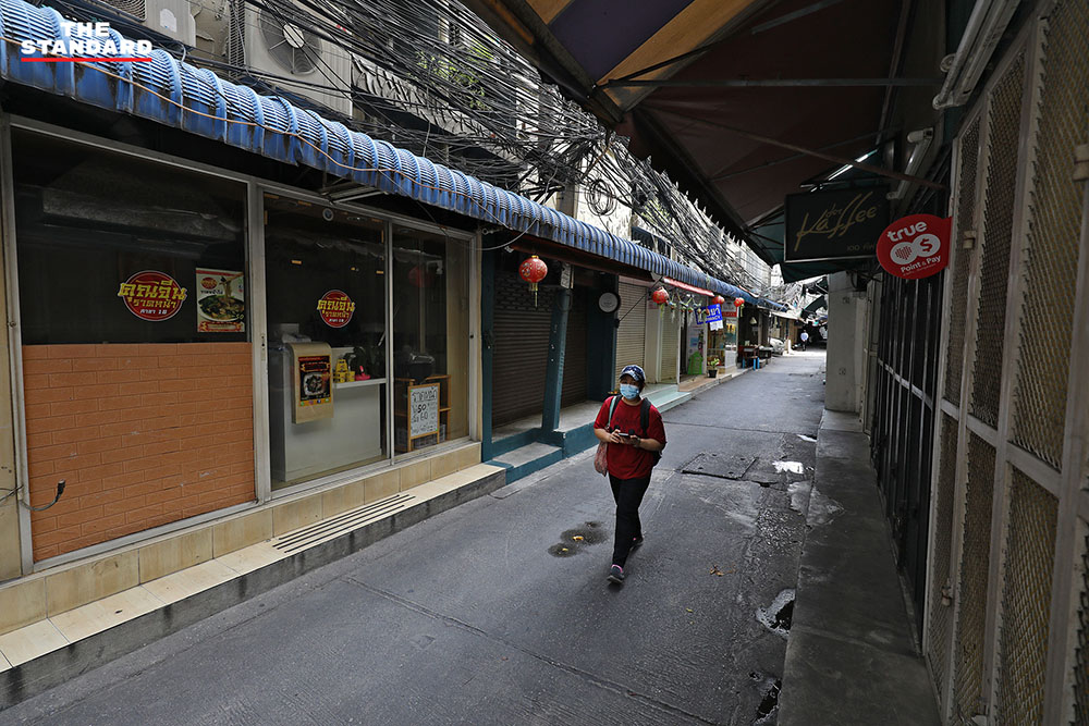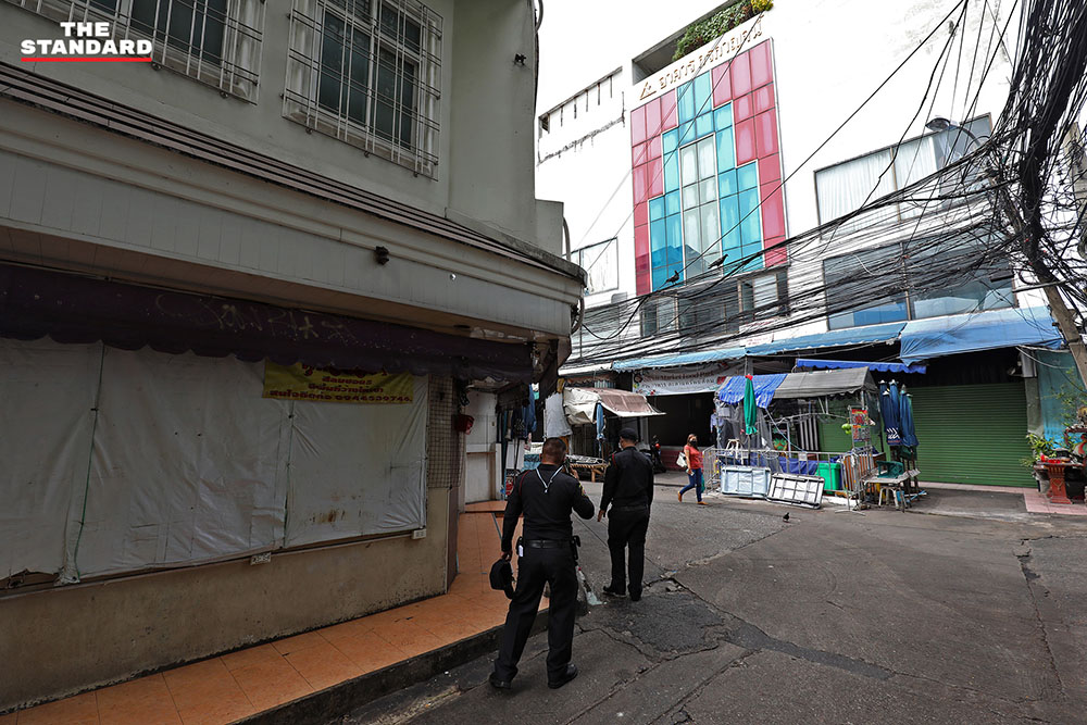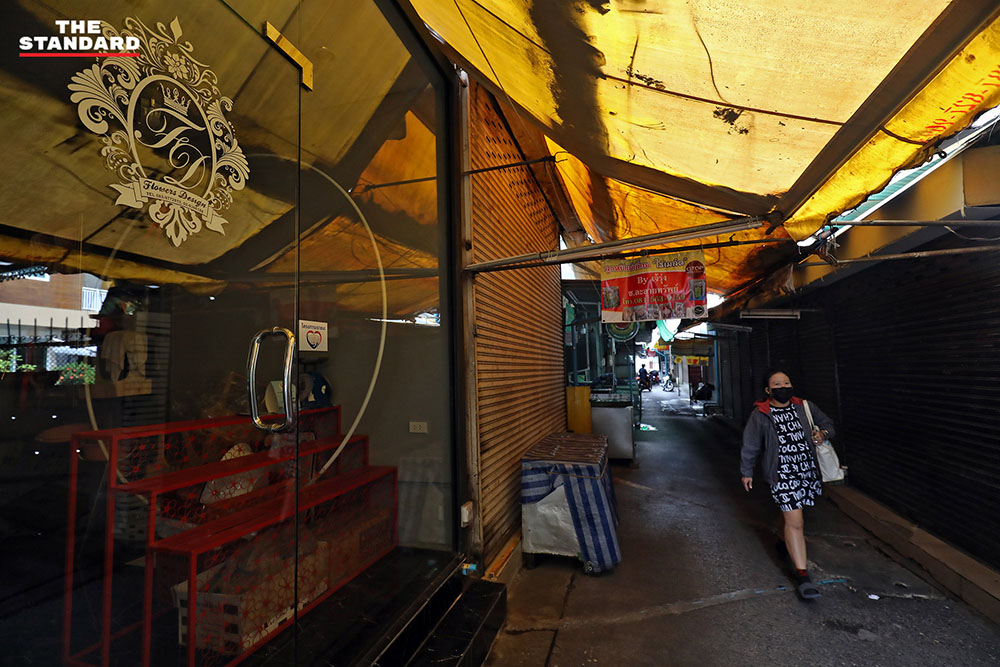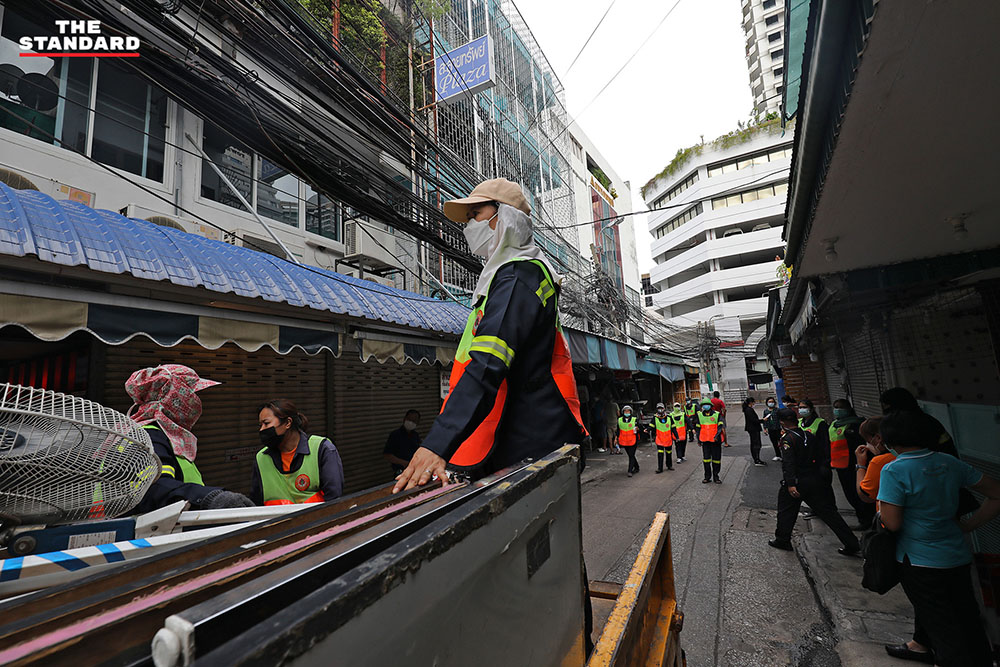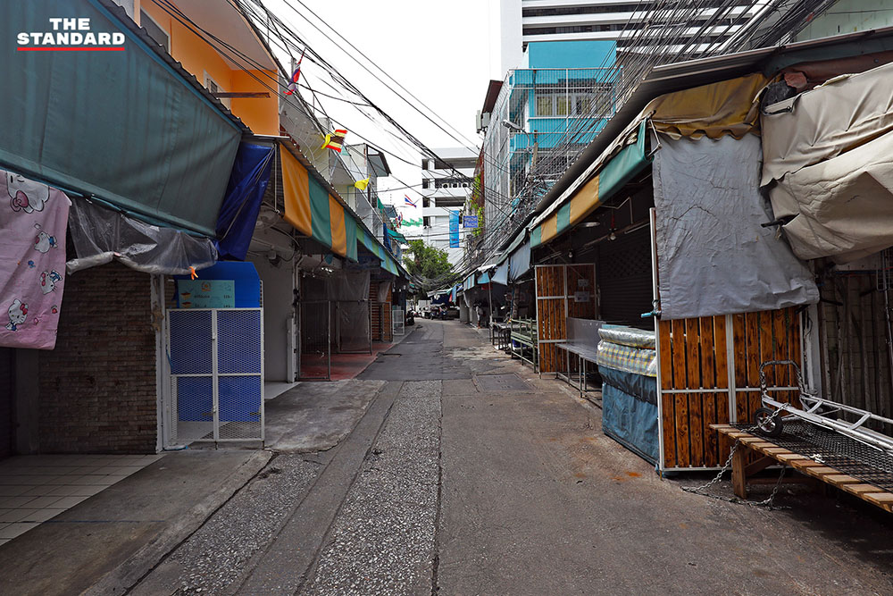 บรรยากาศในตลาดในซอยละลายทรัพย์ ถนนสีลม ที่ร้านค้าต่างปิดให้บริการ หลังก่อนหน้านี้กรุงเทพมหานครขอความร่วมมือผู้ค้าให้หยุดทำการค้าเป็นเวลา 3 วัน คือวันที่ 10-12 มิถุนายน เพื่อให้เจ้าหน้าที่ดำเนินการล้างทำความสะอาด และตรวจหาผู้ติดโควิด-19 เชิงรุกต่อไป