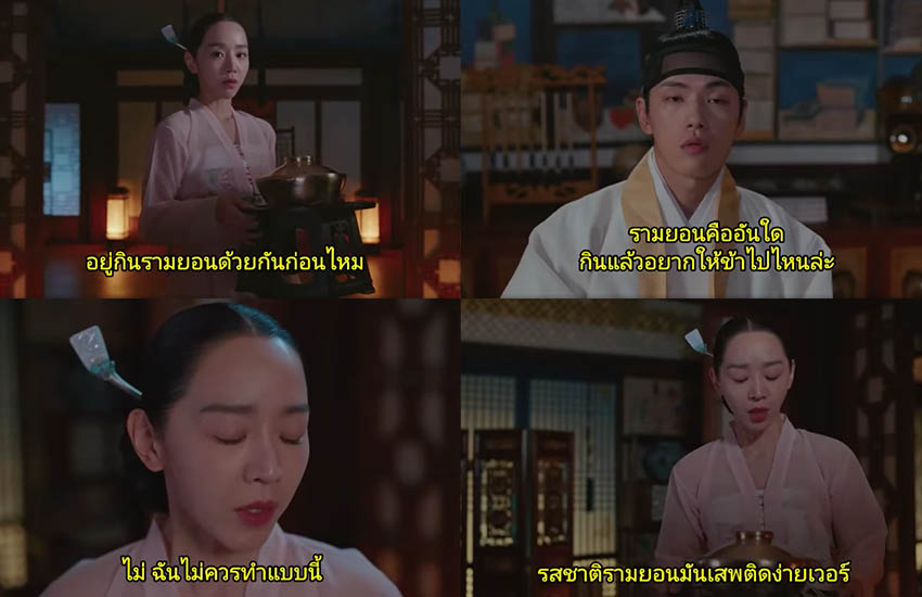 ใน Mr. Queen หลังจากที่เชฟหนุ่มเพลย์บอยสุดแมนในร่างพระมเหสีได้บังเอิญตกล่องปล่องชิ้นกับพระราชาไปครั้งหนึ่งแล้ว ก็ดันฟินติดใจขึ้นมา จึงสับสนในตัวเองและลุกขึ้นมาทำรามยอนไปชวนพระราชากินกัน นี่ตกลงอยากกินรามยอนหรืออยากกินอะไรกันแน่