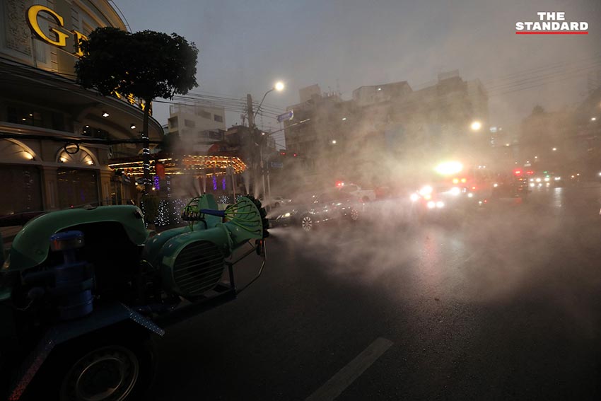 ชัชชัย กิตติชัย หรือ ชัช ตลาดไท พร้อมด้วยจิตอาสา เจ้าหน้าที่ตำรวจ และผู้ที่เกี่ยวข้อง นำรถฉีดพ่นน้ำยาฆ่าเชื้อโคโรนา 2019 มาให้บริการฉีดพ่นย่านราชวงศ์ เยาวราช