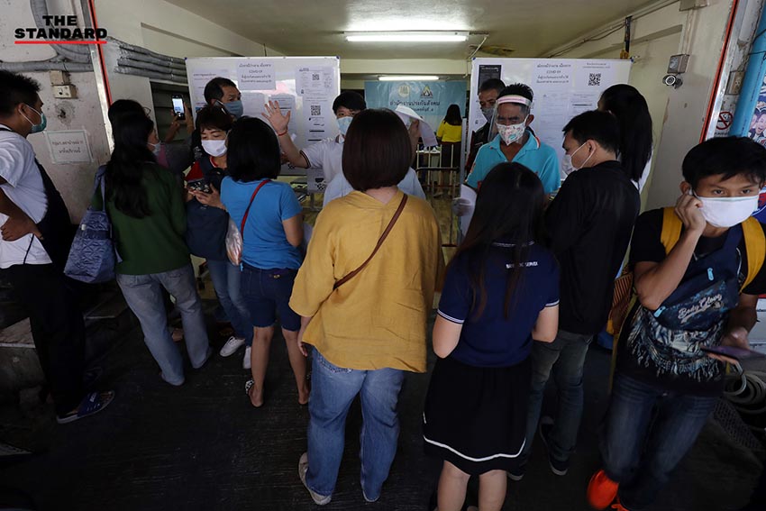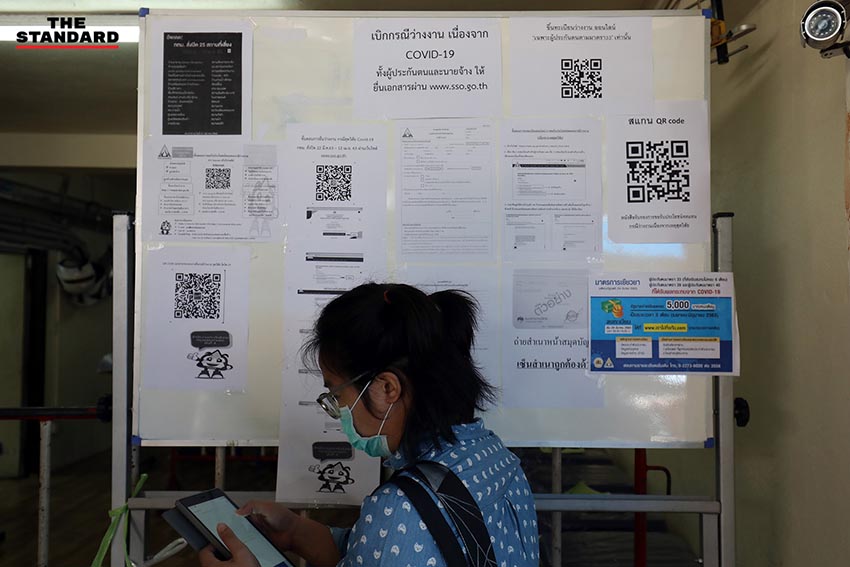 ส่วนใหญ่มาเพื่อยื่นเรื่องรับสวัสดิการฯ เพราะได้รับผลกระทบจากโควิด-19 ทั้งกรณีว่างงาน พักงาน หรือถูกเลิกจ้างเพราะการปิดสถานที่ของภาครัฐ บางส่วนยังมายื่นเรื่องรับเงินเยียวยา 5,000 บาทต่อเดือน แต่ก็ยื่นไม่ได้ เพราะต้องลงทะเบียนผ่านเว็บไซต์ ‘เราไม่ทิ้งกัน’ เท่านั้น