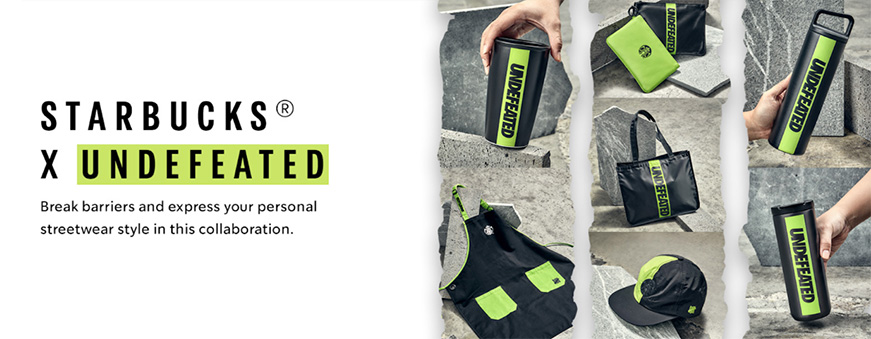 และถ้าสังเกตให้ดี หลังๆ มานี้เราจะพบว่าสินค้าที่ระลึกที่จำหน่ายในร้านของ Starbucks ผ่านการทำงานร่วมกับพาร์ตเนอร์แบรนด์ดังในอุตสาหกรรมแฟชั่นก็มักจะได้กระแสตอบรับที่ดีมากเป็นพิเศษ เช่น คอลเล็กชันที่ Starbucks ทำร่วมกับ Herschel แบรนด์ผู้ผลิตกระเป๋าชื่อดัง ผลิตแก้วและกระเป๋าทรงต่างๆ ออกมาจำหน่าย หรือล่าสุดกับ Undefeated แบรนด์สตรีทแวร์ชื่อดังที่ได้รับการตอบรับถล่มทลาย ถึงขั้นที่สินค้าบางชิ้นถูกจำหน่ายหมดอย่างรวดเร็วในหลายสาขา