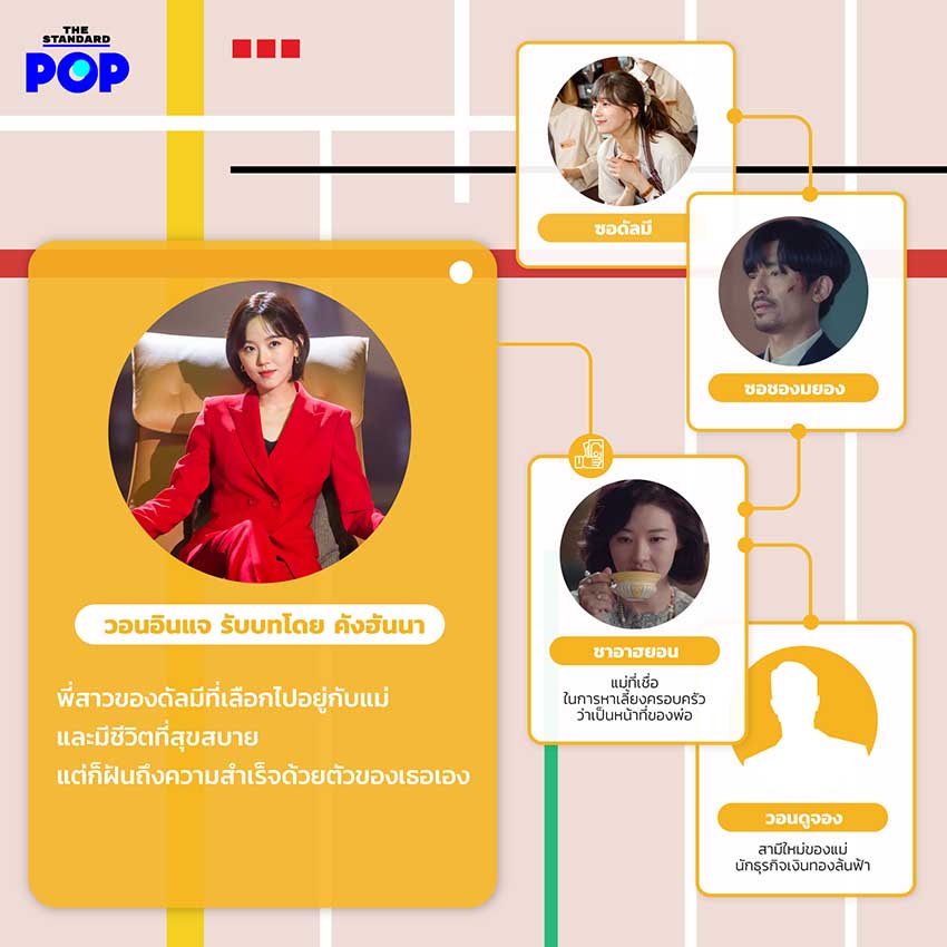*คุณย่าชเววอนด็อก (รับบทโดย คิมแฮซุก) – ตัวละครที่เท่ากับนางฟ้าปลอมตัวลงมาช่วยเหลือผู้ทุกข์ยาก ออร่าความอบอุ่นจิตใจดีหนักแน่นมาก