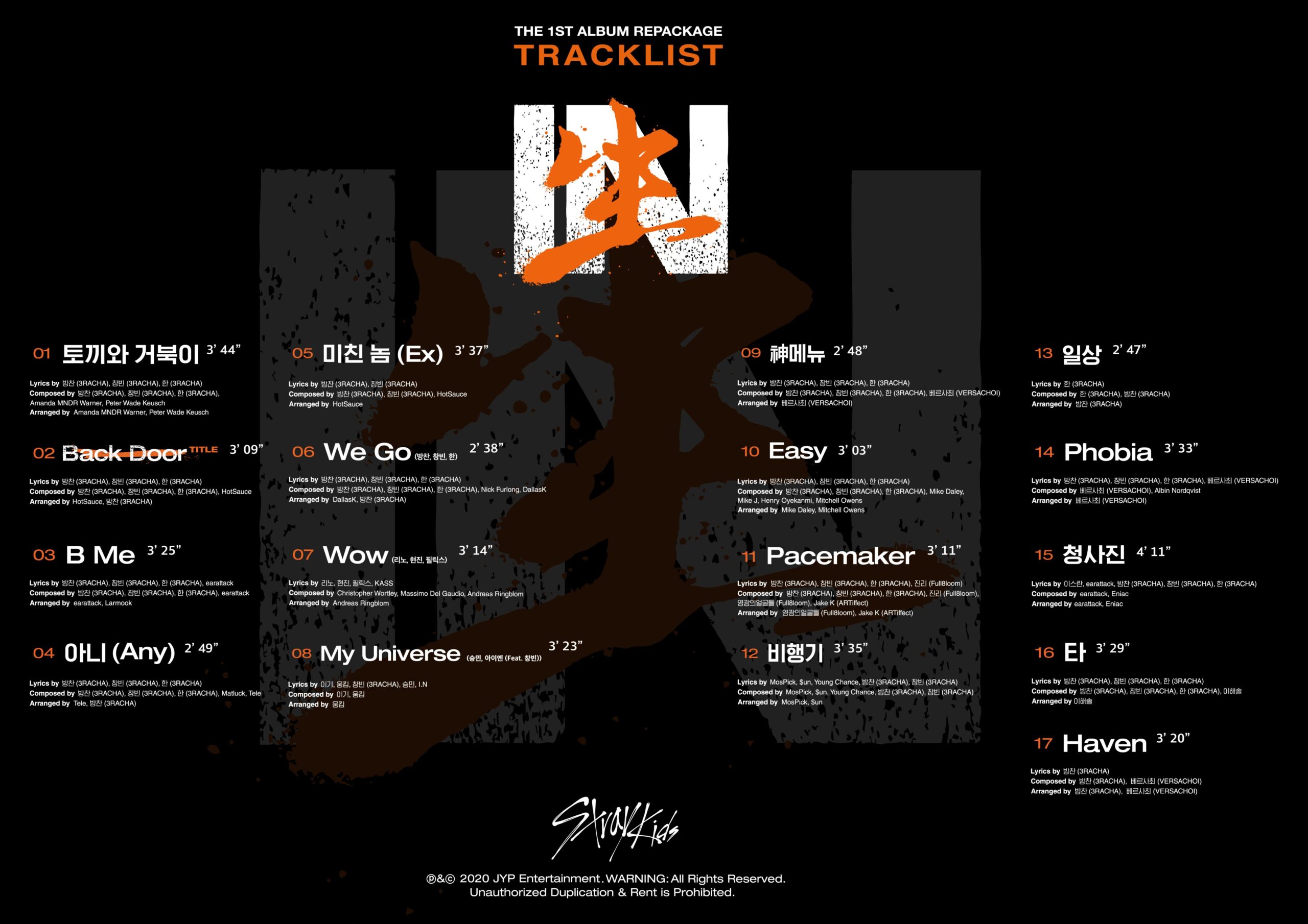 นอกจากเพลงไตเติล Back Door แล้ว 3RACHA ยังมีส่วนร่วมในแทร็กที่ 1-5 อย่าง The Tortoise and the Hare, B Me, Any, We Go และ Ex ในขณะที่ ลีโน, ฮยอนจิน และฟีลิกซ์ นั้น พวกเขาได้มีส่วนร่วมในการแต่งเนื้อร้องเพลง Wow และ บังชาน ซึงมิน และไอเอ็น ได้มีส่วนร่วมในการแต่งเนื้อร้องเพลง My Universe ซึ่งเป็นเพลงยูนิตที่ Stray Kids เคยแสดงในคอนเสิร์ตเดี่ยวครั้งแรก Stray Kids World Tour ‘District 9: Unlock’ อีกด้วย
