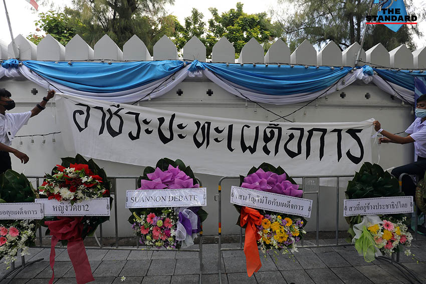 ขณะที่บรรยากาศของการจัดกิจกรรมมีการนำพวงหรีดของตัวแทนโรงเรียนต่างๆ กว่า 48 โรงเรียนมาแขวนไว้ที่บริเวณริมกำแพงกระทรวงศึกษาธิการ เพื่อแสดงออกและไว้อาลัยต่อรัฐมนตรีและการปฏิรูปการศึกษาของกระทรวงศึกษาธิการ มีการนำสแตนดี้ที่เป็นภาพของรัฐมนตรีว่าการกระทรวงศึกษาธิการมาตั้งแสดง เพื่อแสดงออกเชิงสัญลักษณ์ในบริเวณพื้นที่การชุมนุมด้วย
