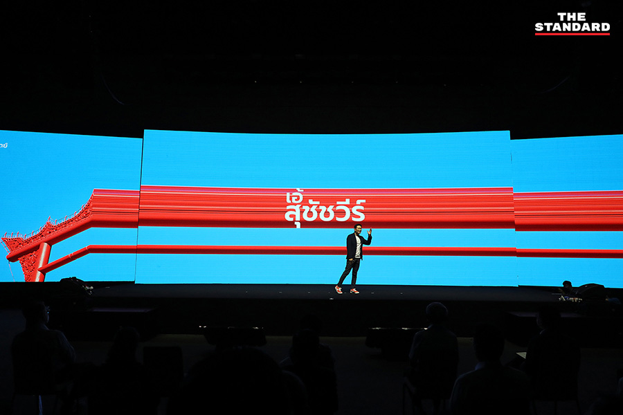 สุชัชวีร์ปรากฏตัวภายใต้ชุดสูทลำลองกับรองเท้าผ้าใบสีส้ม เพื่อสื่อว่าเข้ากันได้และรับฟังความเห็นจากทุกกลุ่ม และในการปรากฏตัวยังมีบิดา-มารดา รวมถึงภรรยา มาร่วมงาน ก่อนนั่งลงกราบที่ตักของ ชวน หลีกภัย ประธานรัฐสภา และบิดา-มารดา พร้อมสวมกอดภรรยา ก่อนขึ้นเวทีแสดงวิสัยทัศน์ ยืนยันความตั้งใจกว่า 30 ปีที่ต้องการเปลี่ยน กทม. เชื่อว่าจะสามารถทำได้