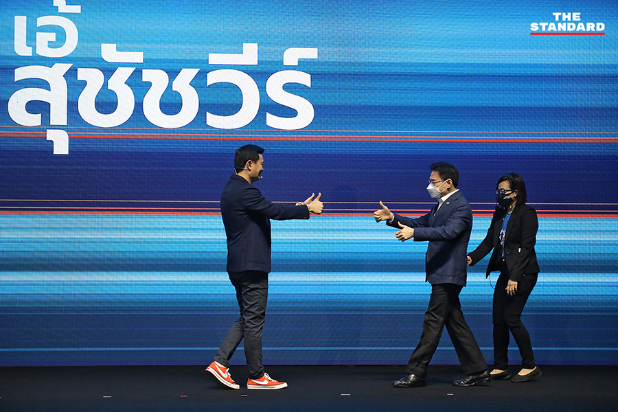 วันนี้ (13 ธันวาคม) พรรคประชาธิปัตย์เปิดตัว ดร.เอ้-สุชัชวีร์ สุวรรณสวัสดิ์ อดีตอธิการบดีสถาบันเทคโนโลยีพระจอมเกล้าเจ้าคุณทหารลาดกระบัง (สจล.) เป็นว่าที่ผู้สมัครผู้ว่าราชการกรุงเทพมหานคร (ผู้ว่าฯ กทม.) ในสังกัดของพรรค โดยจัดงานที่หอประชุมชั้น 5 ห้างสามย่านมิตรทาวน์ ภายใต้ชื่องาน ‘เปลี่ยนกรุงเทพฯ’ และใช้แฮชแท็ก #เราทำได้ ซึ่งบรรยากาศภายในงานมีแกนนำ และ ส.ส. ผู้สมัคร ส.ก. มาร่วมงาน