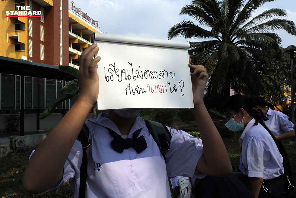 โดยระหว่างที่กิจกรรมดำเนินอยู่นั้น หนึ่งในตัวแทนของนักเรียนศึกษานารีขึ้นกล่าวต่อหน้าสื่อมวลชนและกลุ่มผู้ชุมนุม ระบุว่า “พวกเราทุกคนมีสิทธิ์ที่จะเลือกอนาคตของพวกเรา ไม่ต้องการให้ใครมาเลือกอนาคตของตัวเราเอง เราจะต้องโตไปเป็นอนาคตของชาติ แต่ทำไมเราไม่มีสิทธิ์เลือกอนาคตของเราเอง