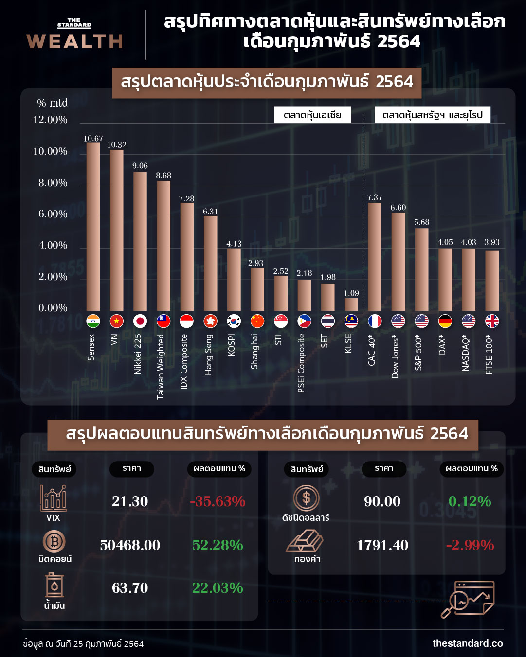 สรุปทิศทางตลาดหุ้นและสินทรัพย์ทางเลือกเดือนกุมภาพันธ์ 2564