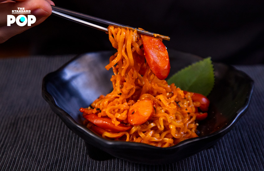 เกือบลืมไปว่า Spicy Carbonara Ramyeon (200 บาท) ของ Super Seoul ก็ใช่ย่อย ทวิสต์จากคาร์โบนาราให้มีรสเผ็ดขึ้น ผัดกับเส้นรามยอนกับไส้กรอก