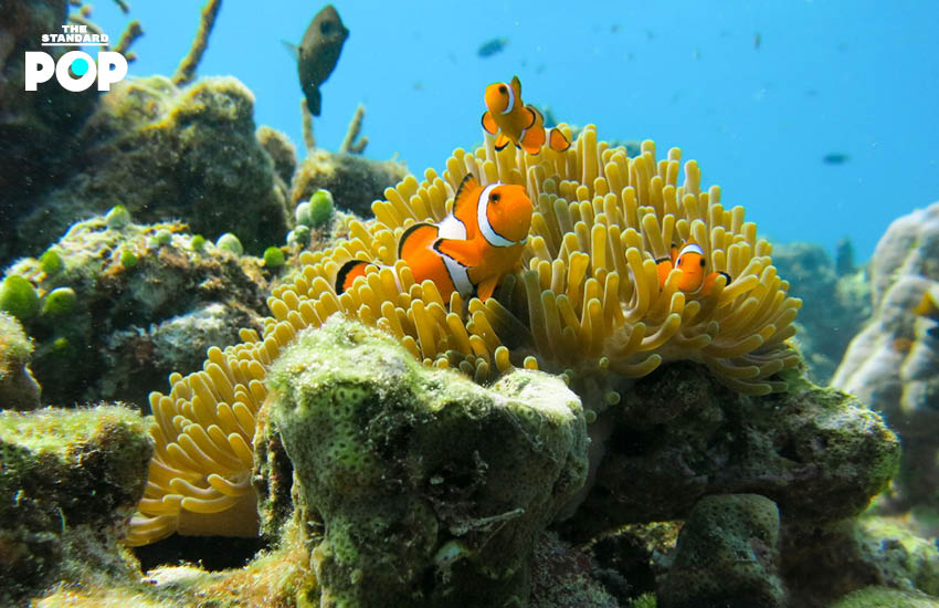 ปะการังหลากหลาย และแน่นอนว่ามีปลานีโมดูจนเบื่อ ไปทางไหนก็เจอ