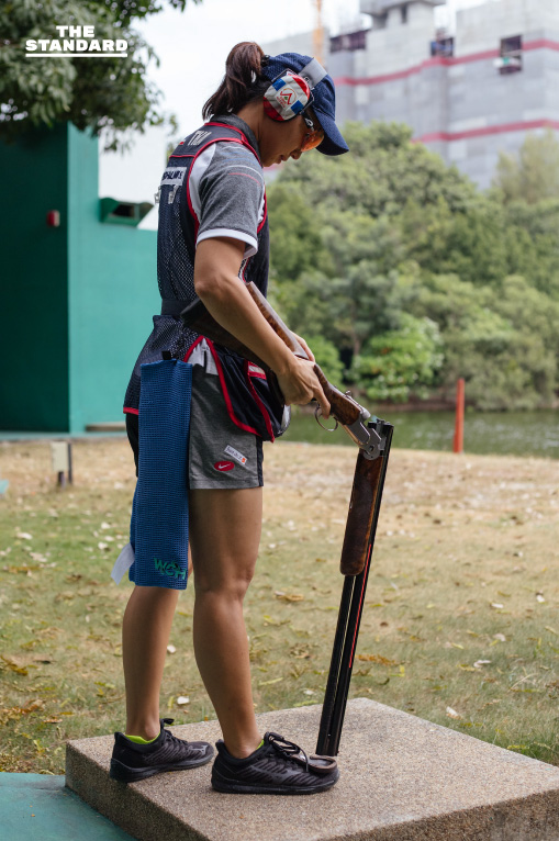 ซึ่งเราก็ไม่ปฏิเสธที่จะทดลองความรู้สึกนั้น เพราะว่าในชีวิตของคนคนหนึ่งจะมีสักกี่คนที่ได้รับโอกาสเรียนยิงเป้าบินจากนักกีฬาทีมชาติไทย ที่สนามที่เธอลงฝึกซ้อมเพื่อไล่ล่าความเพอร์เฟกต์ในทุกๆ วัน