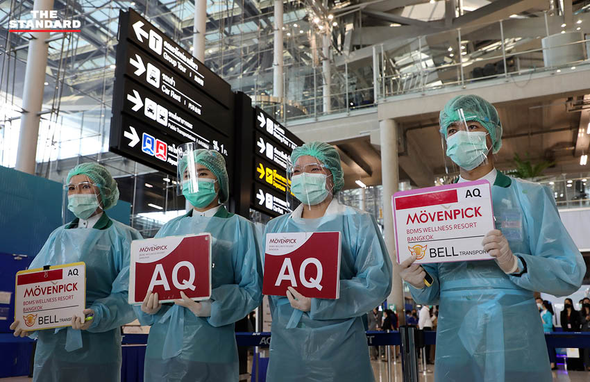 จากนั้นผู้โดยสารเดินตามเส้นทางที่กำหนด ผ่านการตรวจคัดกรองอุณหภูมิ หากผู้โดยสารอุณหภูมิเกิน 37.3 องศาเซลเซียส หรือเข้าเกณฑ์ PUI เจ้าหน้าที่ด่านควบคุมโรคฯ จะกันผู้โดยสารดังกล่าวไปดำเนินการตามมาตรการของกระทรวงสาธารณสุข ถ้าอุณหภูมิไม่เกิน 37.3 องศาเซลเซียส ก็เข้าสู่กระบวนการตรวจคนเข้าเมือง หลังจากนั้นผู้โดยสารรับสัมภาระและผ่านพิธีการศุลกากรกรณีมีของสำแดง แต่หากไม่มีของสำแดงจะมีเจ้าหน้าที่นำผู้โดยสารไปพบตัวแทนโรงแรมที่เป็นสถานที่กักตัวทางเลือกที่ผู้โดยสารจองมาล่วงหน้าแล้วบริเวณโถงผู้โดยสารขาเข้าชั้น 2 จากนั้นผู้โดยสารขึ้นรถของโรงแรมซึ่งมีการจัดให้มีที่กั้นระหว่างพนักงานขับกับผู้โดยสารเป็นไปตามมาตรฐานการป้องกันการแพร่ระบาดของโรค เพื่อไปดำเนินการตรวจ RT-PCR ตามกำหนด ณ โรงแรมที่พักต่อไป