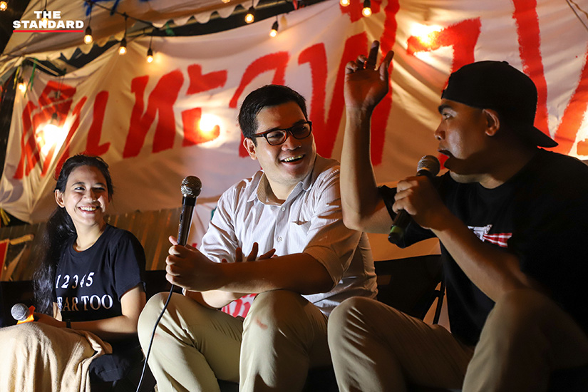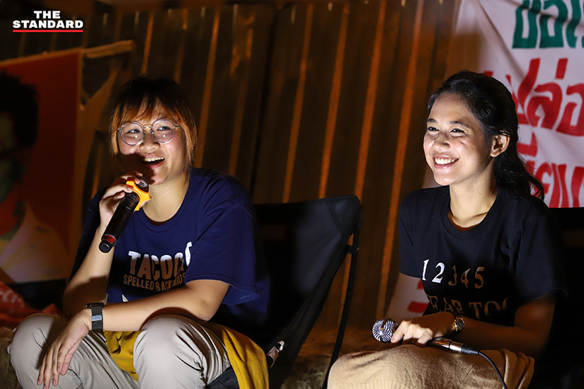 ทั้งนี้ยังมีกิจกรรมเสวนาในหัวข้อ ‘ก้าวแรกคือชัยชนะ ก้าวอย่างสม่ำเสมอคือการต่อสู้’ โดยมีแกนนำกลุ่มราษฎรอย่าง ครูใหญ่-อรรถพล บัวพัฒน์ และมายด์-ภัสราวลี ธนกิจวิบูลย์ผล เข้าร่วมปราศรัย ประเด็นส่วนใหญ่ในการปราศรัยเน้นไปที่การบริหารงานของเจ้าหน้าที่รัฐ เพื่อเน้นย้ำถึงข้อเรียกร้องการขับไล่รัฐบาล