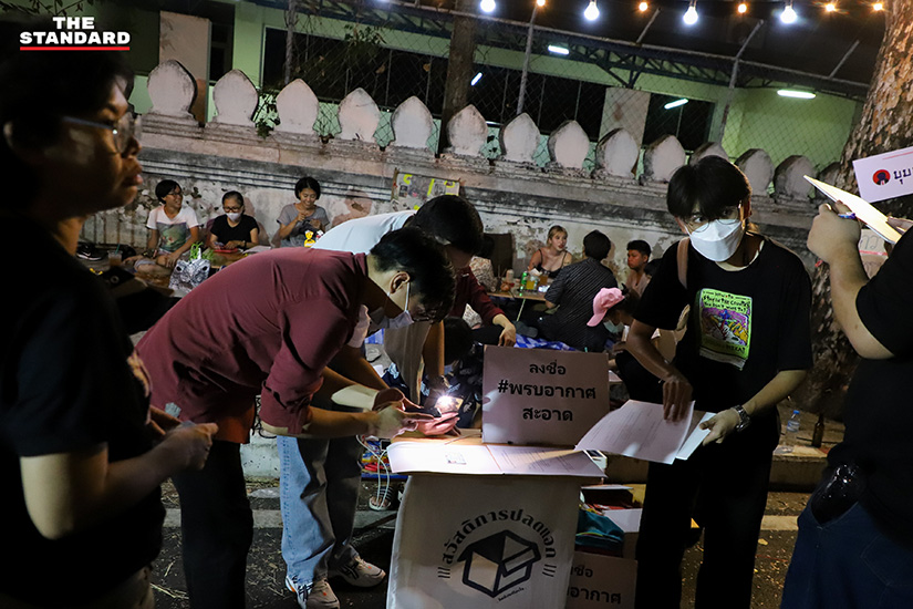 วันนี้ (21 มีนาคม) กิจกรรมของกลุ่มหมู่บ้านทะลุฟ้าที่ปักหลักชุมนุมอยู่ที่ถนนพระราม 5 ข้างทำเนียบรัฐบาล ซึ่งวันนี้จัดกิจกรรมในชื่อ ‘ราษฎรชนะมาร์เก็ต’