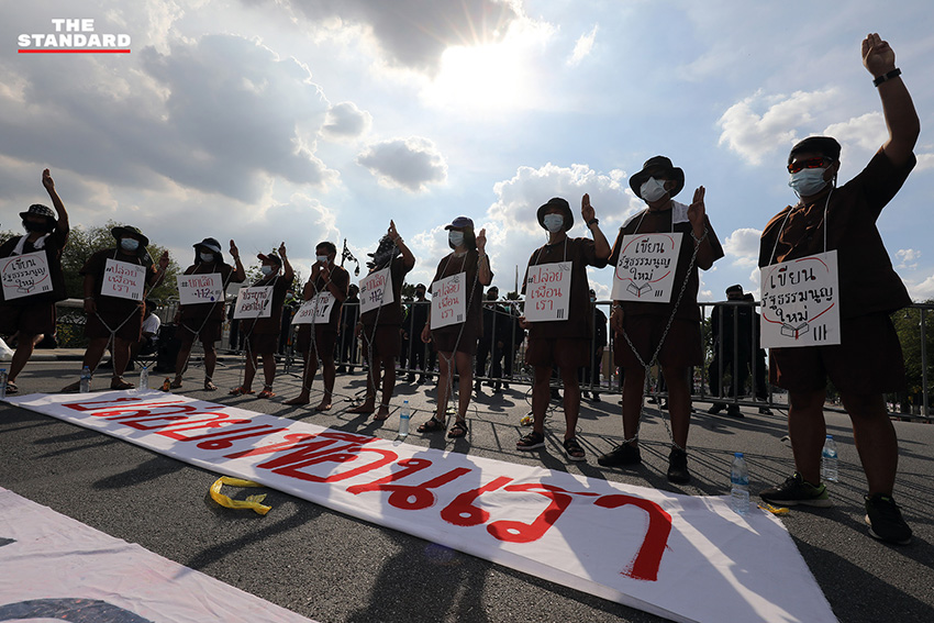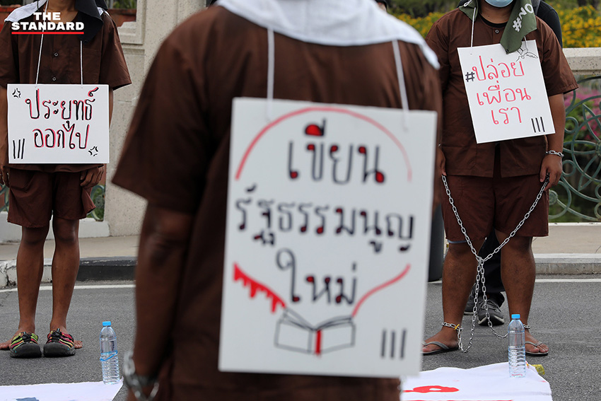 แต่กระนั้นแล้วกฎหมายบางกฎหมาย อย่างเช่น มาตรา 112 ก็ได้ถูกใช้เป็นเครื่องมือในการปิดปากคนที่เห็นต่าง และยังมีกฏหมายอีกหลายกฎหมายที่ได้ถูกใช้เป็นเครื่องมือในการลิดรอนสิทธิเสรีภาพขั้นพื้นฐานของประชาชน แต่เราจะไม่ยอมคุกเข่าและก้มหัวให้กับความอยุติธรรม เราจึงจะขอออกมาเรียกร้องโดยการ ‘ยืน’ เราจะยืนจนกว่าเพื่อนเราจะได้รับการปล่อยตัว“