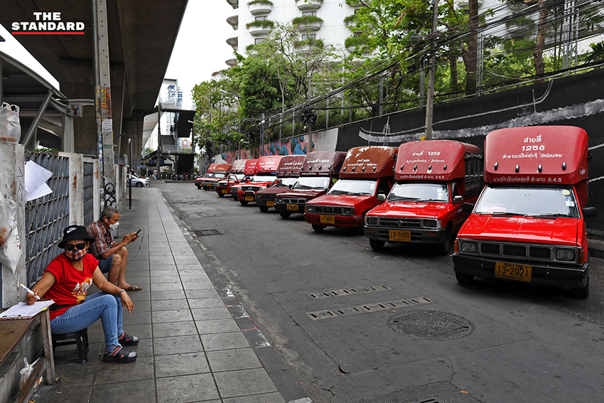 รถสองแถวแดง 1256 ที่วิ่งจากจากสะพานเฉลิมพันธ์ไปถนนแยกสาทร แยกขวาไปตามซอยเซนต์หลุยส์ 3 ถึงแยกถนนจันทน์ที่ตัดกับถนนนางลิ้นจี่ และวิ่งเข้าแยกขวาไปตามถนนนางลิ้นจี่ เมื่อถึงทางแยกพระรามที่ 3 จะเข้าแยกซ้ายไปตามถนนพระรามที่ 3 โดยไปสุดเส้นทางที่วัดช่องลม ปกติแล้วจะทยอยวิ่งออกจากท่าไม่ขาดสาย แต่วันนี้จอดเรียงรายยาวเป็นตับ เพราะผู้โดยสารทั้งขาจรและขาประจำหายหมด สถานการณ์โรคโควิด-19 ที่กำลังระบาดได้พรากการทำมาหากินของพวกเขาไปด้วย