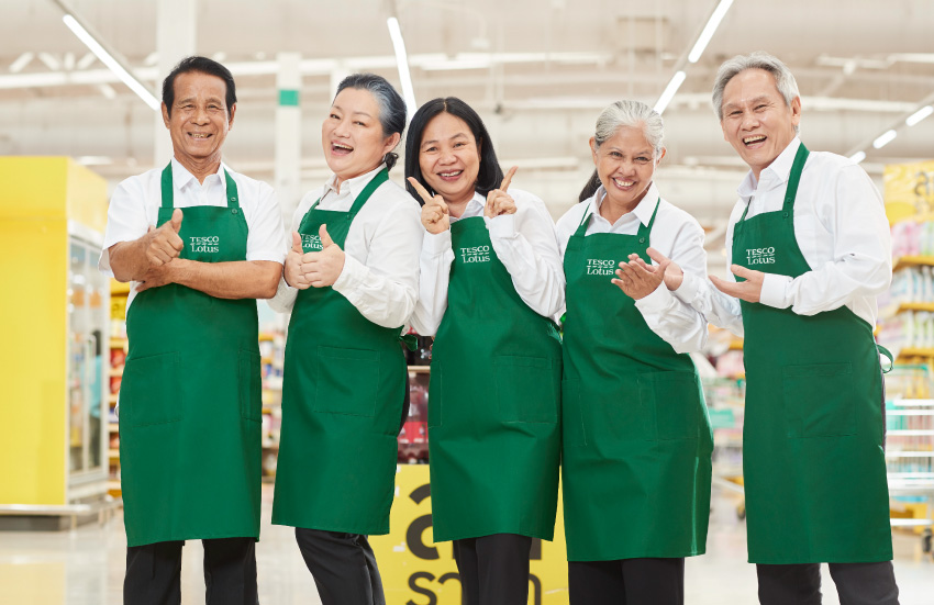 ในฐานะองค์กรที่มีการจ้างงานพนักงานหลายหมื่นตำแหน่งทั่วประเทศ เทสโก้ โลตัส จึงมีนโยบายสนับสนุนความหลากหลายในทุกด้าน ไม่ว่าจะเป็นอายุ ศาสนา เชื้อชาติ และความเชื่ออื่นๆ โดยสนับสนุนการมีส่วนร่วมอย่างเท่าเทียมของเพื่อนพนักงานทุกคน (Diversity & Inclusion) ผ่านโครงการต่างๆ อาทิ โครงการ ‘60 ยังแจ๋ว’ เปิดรับผู้สูงอายุทำงานที่สาขาทั่วประเทศ ถือเป็นห้างค้าปลีกห้างแรกที่จ้างงานผู้เกษียณอายุเป็นจำนวนมาก เพื่อสร้างรายได้และมอบสังคมที่ดีให้คนวัยเกษียณ พร้อมมอบสวัสดิการและสิทธิประโยชน์พนักงานที่ตอบโจทย์ผู้สูงวัย อาทิ เงินสมทบค่ารักษาพยาบาลและตรวจสุขภาพประจำปีเมื่อทำงานครบตามกำหนด โดยปัจจุบันมีผู้เกษียณอายุกว่า 650 ท่านร่วมงานกับเทสโก้ โลตัส ในสาขาต่างๆ ทั่วประเทศ
