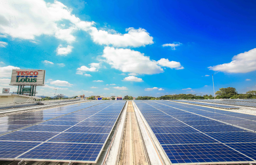 เทสโก้ โลตัส เป็นตัวอย่างที่ดีต่อการเป็นองค์กรที่รับผิดชอบเรื่องสิ่งแวดล้อมในทุกมิติ โดยเป็นห้างค้าปลีกที่ใช้พลังงานทดแทนจากแสงอาทิตย์มากที่สุด ด้วยการติดตั้งโซลาร์เซลล์ (Solar PV Rooftop) บนหลังคาไฮเปอร์มาร์เก็ต 47 สาขา และศูนย์กระจายสินค้า 6 แห่ง มีขนาดติดตั้งรวม 40 เมกะวัตต์ ในปี 2020 เทสโก้ โลตัส สามารถลดการปล่อยก๊าซเรือนกระจก 18% เมื่อเทียบกับปีฐานปี 2015/16 และพร้อมเดินหน้าสู่เป้าหมายลดการปล่อยก๊าซเรือนกระจก 60% ในปี 2025