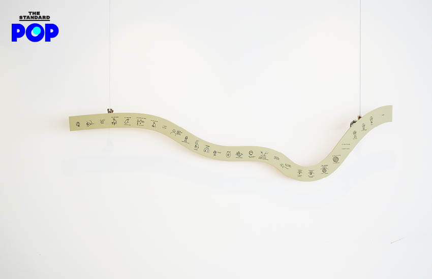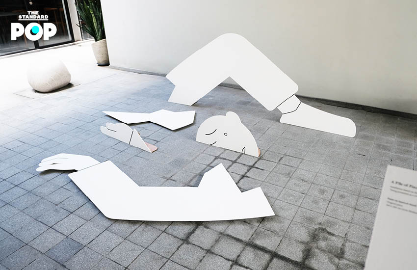 จากภาพวาดที่ทิ้งตัวลงในกระดาษ เดินทางมาสู่นิทรรศการครั้งแรก เธอเลือกเอาความรู้สึกเหล่านี้กลับมาพัฒนาต่อผ่านการเปลี่ยนแปลงรูปแบบของพื้นที่ทำงาน เพราะพอพูดถึงนิทรรศการ แน่นอนสิ่งแรกที่เราคิดถึงคือสเปซ แล้วจากงานลายเส้นจะกลายมาเป็นนิทรรศการในพื้นที่แบบสามมิติได้อย่างไร?