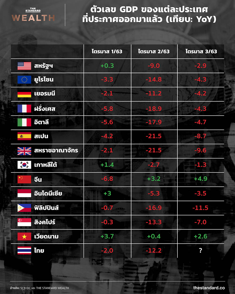 ยรรยง ไทยเจริญ รองผู้จัดการใหญ่ ผู้บริหารสูงสุด ศูนย์วิจัยเศรษฐกิจและธุรกิจ (EIC) ธนาคารไทยพาณิชย์ (SCB) กล่าวว่า EIC คาดว่าเศรษฐกิจไทยไตรมาส 3 ของปีนี้มีแนวโน้มหดตัว 8.6% เมื่อเทียบกับช่วงเดียวกันของปีก่อน ซึ่งยังถือว่าเป็นการหดตัวในระดับสูง เนื่องจากรายได้นักท่องเที่ยวต่างชาติที่หายไป ขณะที่การส่งออกก็ยังฟื้นตัวอย่างเชื่องช้า