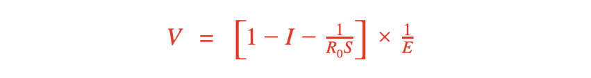 ถ้ามีคำถามว่า จะต้องฉีดวัคซีนกี่คน จึงจะทำให้อัตราการแพร่กระจาย (R) น้อยกว่าหนึ่ง เราสามารถแก้สมการข้างบน และตอบได้ว่า ต้องฉีดวัคซีนอย่างน้อย