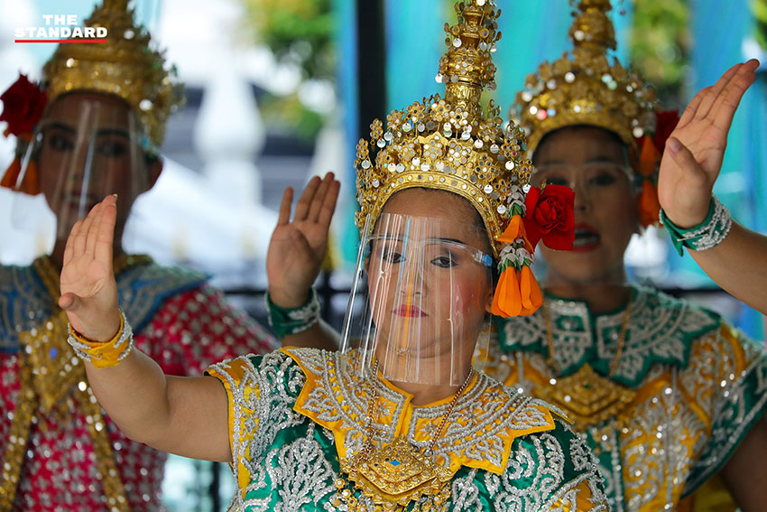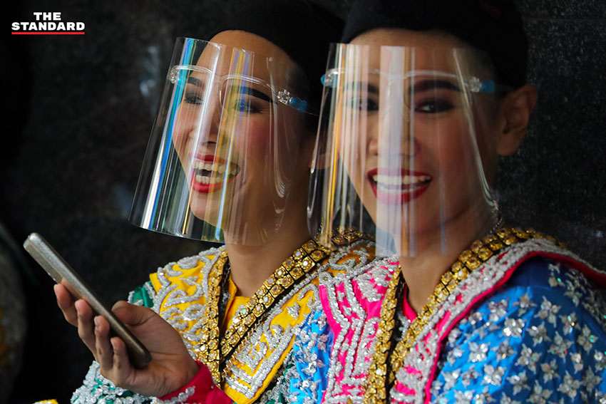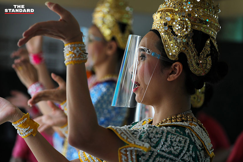 แต่การกลับมาครั้งนี้มาพร้อมกับการปรับตัวเพื่อป้องกันการแพร่ระบาดของโรคโควิด-19 โดยนางรำทุกคนรวมถึงนักดนตรีต้องสวม Face Shield ระหว่างรำและเล่นดนตรี เป็นภาพที่หาดูได้ยาก และไม่คิดว่าจะเห็นก็ได้เห็น เมื่อนางรำในชุดเต็มยศต้องเพิ่มอุปกรณ์สำคัญเข้ามาในช่วงที่ต้องสร้างความปลอดภัยด้านสุขภาพ