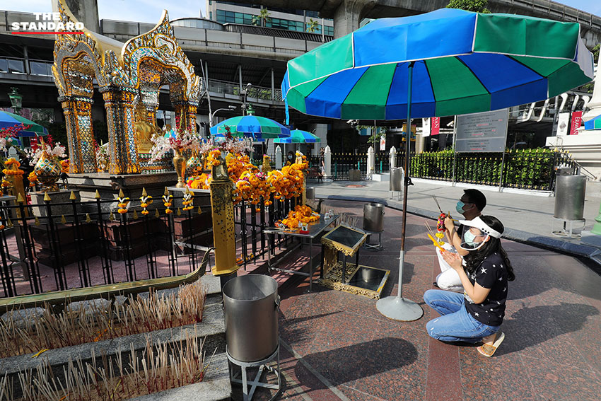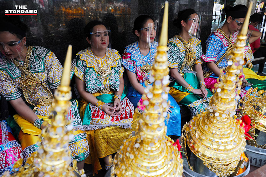 หลังศาลท้าวมหาพรหม แยกราชประสงค์ ปิดไม่ให้ผู้ศรัทธาเข้ามากราบไหว้สักการะตั้งแต่ปลายเดือนมีนาคม ส่งผลให้แม่ค้าจำหน่ายดอกไม้ นางรำแก้บน และนักดนตรี ต้องหยุดทำงาน ล่าสุด กลับมาเปิดอีกครั้งตั้งแต่วันที่ 1 พฤษภาคมแล้ว และเมื่อมีมาตรการคลายล็อกให้สามารถทำกิจกรรมต่างๆ ได้ นางรำและนักดนตรีจึงหวนคืนสู่เวทีรับบริการรำแก้บนอีกครั้ง