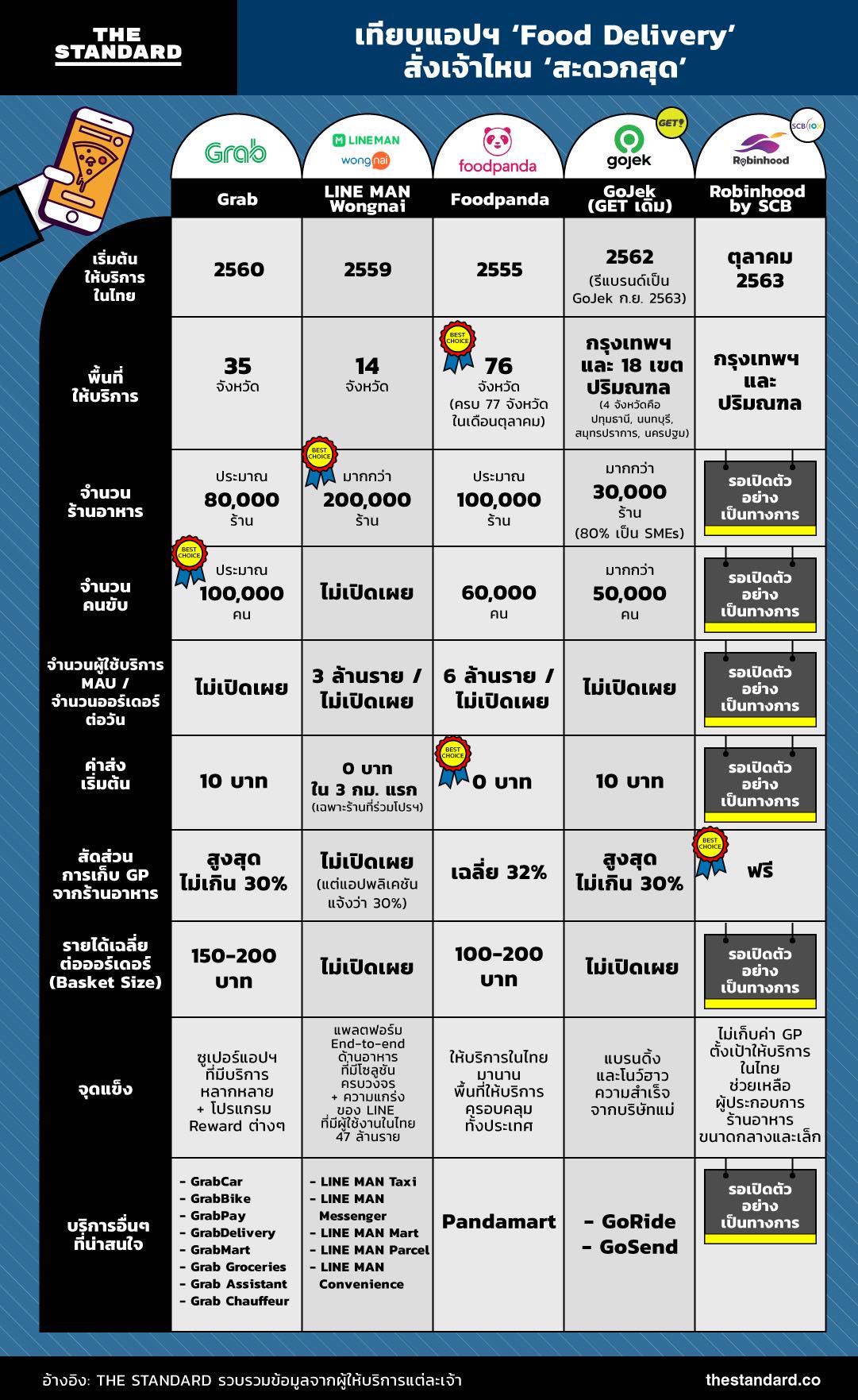 THE STANDARD สรุปภาพรวมการแข่งขันของศึกแพลตฟอร์มสั่งอาหารออนไลน์ในประเทศไทยมากางดูกันให้เห็นชัดๆ ว่าผู้เล่นแต่ละเจ้ากำลังขยับตัวเองในจังหวะไหน ด้วยกลยุทธ์แบบใด แล้วสถานการณ์การแข่งขันต่อจากนี้จะมีแนวโน้มเปลี่ยนแปลงไปอย่างไรบ้าง