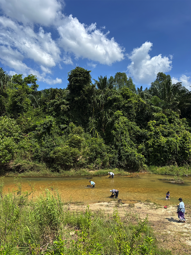 สาธิตการร่อนแร่ที่คลองบ้านหงาว จังหวัดระนอง (ภาพ: ณัฐจรีย์ จิราธิวัฒน์)