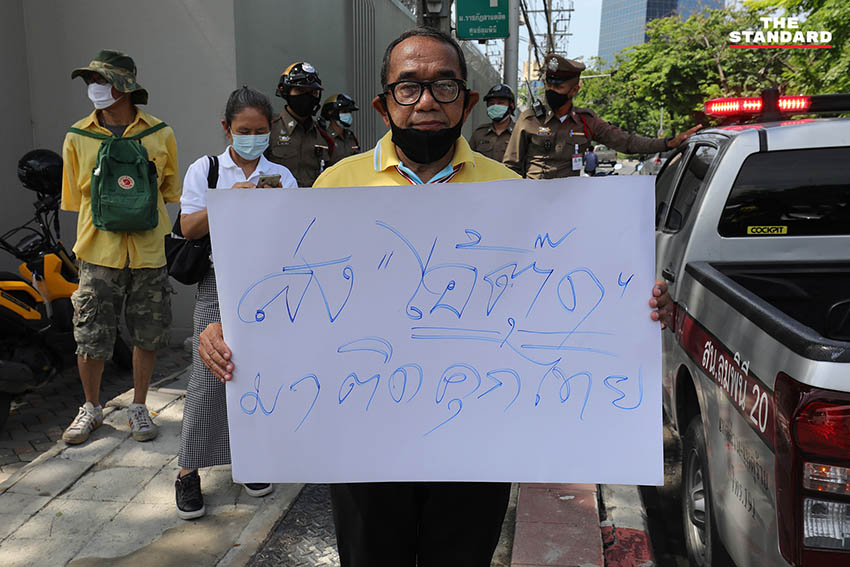 สำหรับบรรยากาศในวันนี้มีตำรวจมาดูแลความเรียบร้อย มีประชาชนแต่งกายด้วยเสื้อสีเหลือง ผูกริบบิ้นลายธงชาติ และห้อยนกหวีดคอยชูป้ายให้กำลังใจด้วย