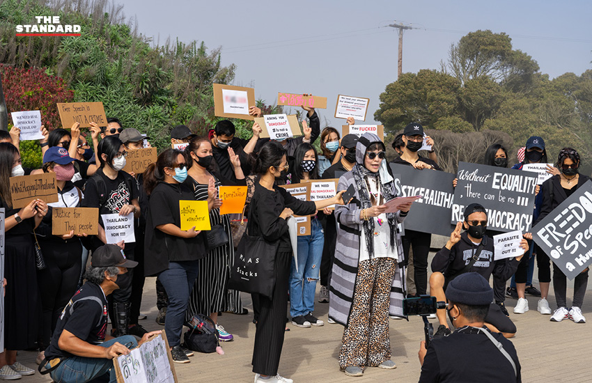 ช่วงบ่ายของวันอาทิตย์ที่ 18 ตุลาคมที่ผ่านมา ตามเวลาท้องถิ่นสหรัฐอเมริกา คนไทยจำนวนมากที่อาศัยในซานฟรานซิสโกและอ่าวซานฟรานซิสโก ได้ออกมารวมตัวจัดกิจกรรมสนับสนุนการเคลื่อนไหวของกลุ่มผู้ชุมนุมในประเทศไทย เพื่อแสดงความ ‘ไม่เห็นด้วย’ กับการใช้ความรุนแรงของรัฐบาลในการสลายการชุมนุม