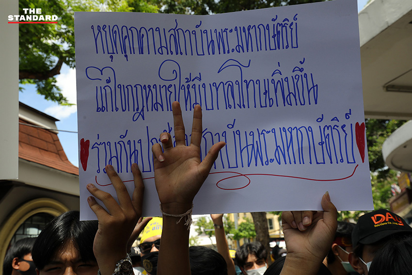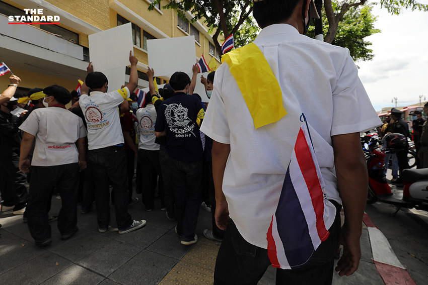 ส่วนจะมีการเรียกร้องให้ใช้มาตรา 112 กับคนที่ถือป้ายข้อความไม่เหมาะสมหรือไม่นั้น ขอให้เป็นเรื่องทางกฎหมาย ทางกลุ่มมีหน้าที่อย่างเดียวคือปกป้องสถาบันพระมหากษัตริย์
