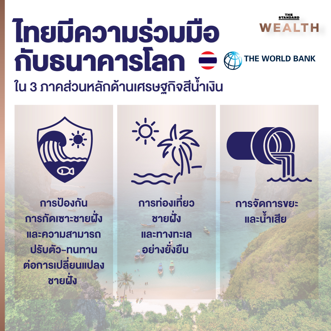 ‘เศรษฐกิจสีน้ำเงิน’ (Blue Economy) ถือเป็นขุมทรัพย์สำคัญของประเทศไทย โดยคิดเป็นสัดส่วนถึง 30% ของผลิตภัณฑ์มวลรวมในประเทศ (GDP) ครอบคลุมทั้งการท่องเที่ยว การประมง และการขนส่งทางทะเล ตลอดจนอุตสาหกรรมและภาคส่วนอื่นๆ ที่เกี่ยวข้อง