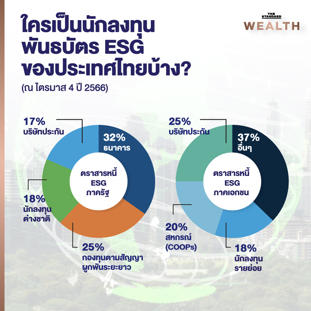 - พันธบัตร ESG ภาคเอกชน ส่วนใหญ่ถือครองโดยบริษัทประกันภัย (25%), สหกรณ์ (20%) และนักลงทุนรายย่อย (18%)