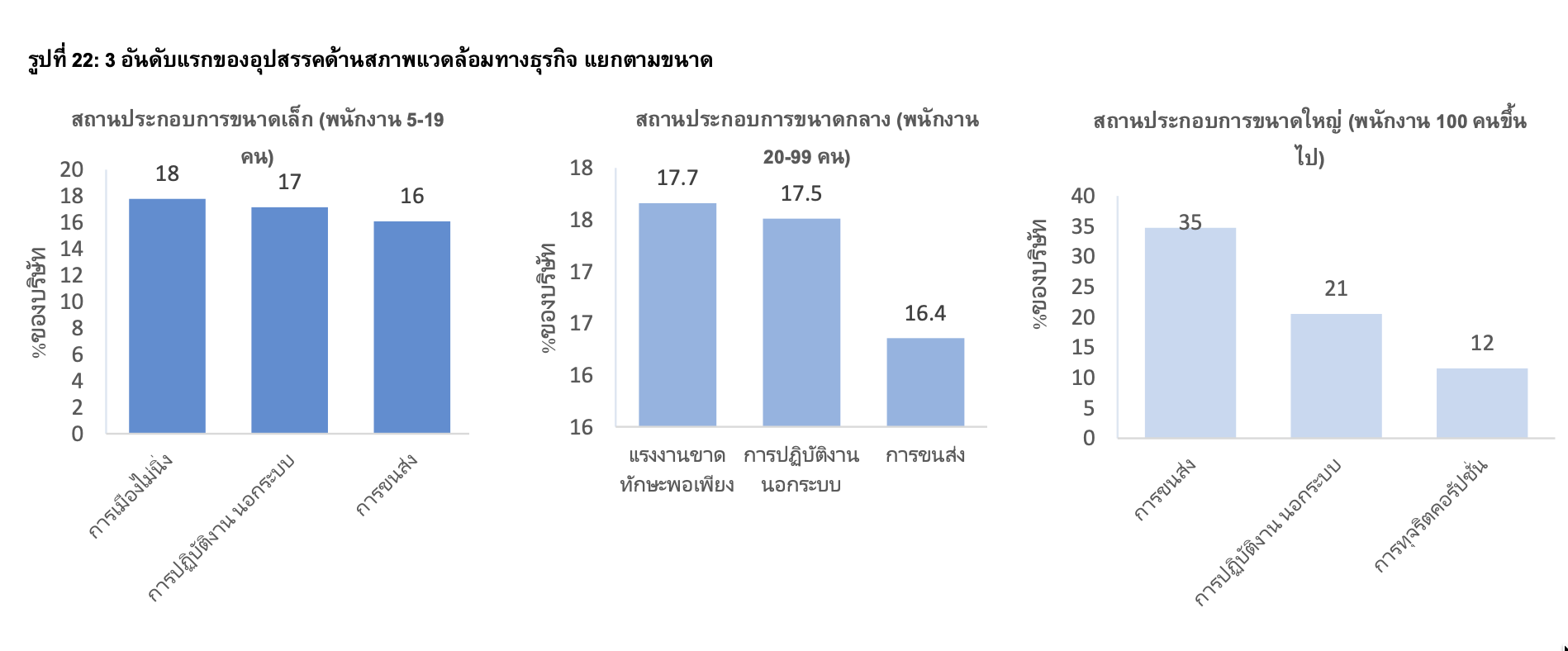 ปัญหา ‘ทักษะแรงงาน’ ถูกระบุเป็นอุปสรรคสำคัญ โดย 13.3% ของบริษัทมองว่าเป็นข้อจำกัดหลัก โดยเฉพาะในธุรกิจขนาดกลางและใหญ่