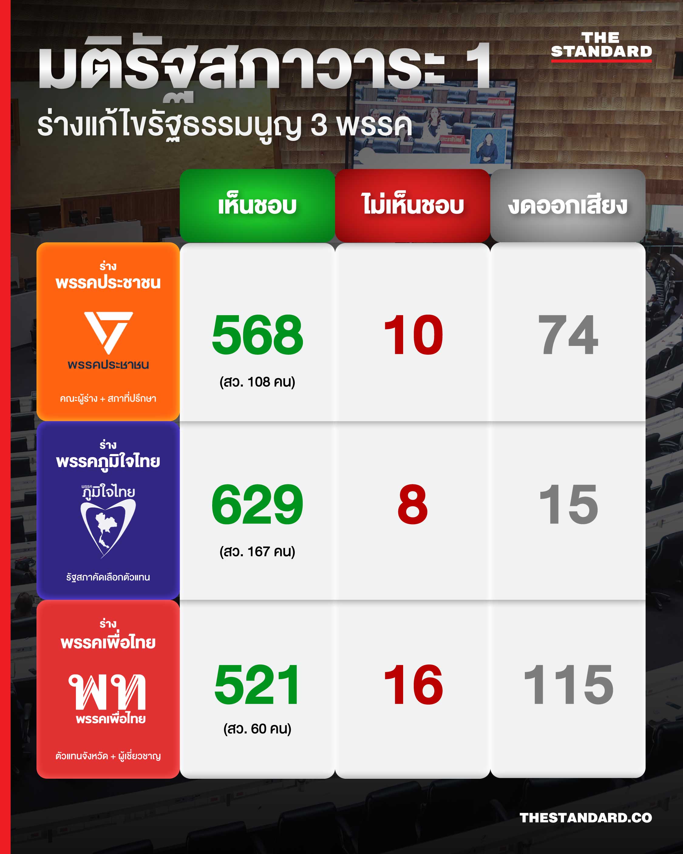 มติรัฐสภาวาระ 1 ร่างแก้ไขรัฐธรรมนูญ 3 พรรค