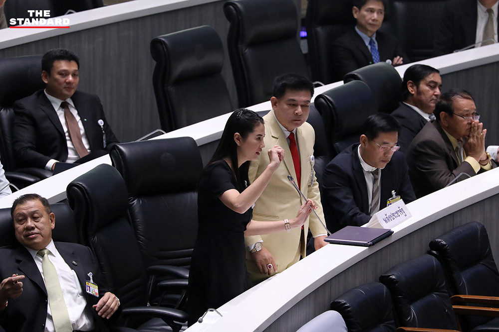 จากนั้นมี ส.ส. ฝ่ายค้าน เช่น ปารีณา ไกรคุปต์ และสิระ เจนจาคะ จากพรรคพลังประชารัฐลุกขึ้นประท้วง บรรยากาศเป็นไปอย่างวุ่นวาย โดยมีทั้งฝ่ายรัฐบาลประท้วงผู้อภิปรายว่าพูดนอกประเด็นและพูดไม่ให้เกียรติประธานการประชุม ส่วนฝ่ายค้านประท้วงประธานว่าทำหน้าที่ไม่เป็นกลาง