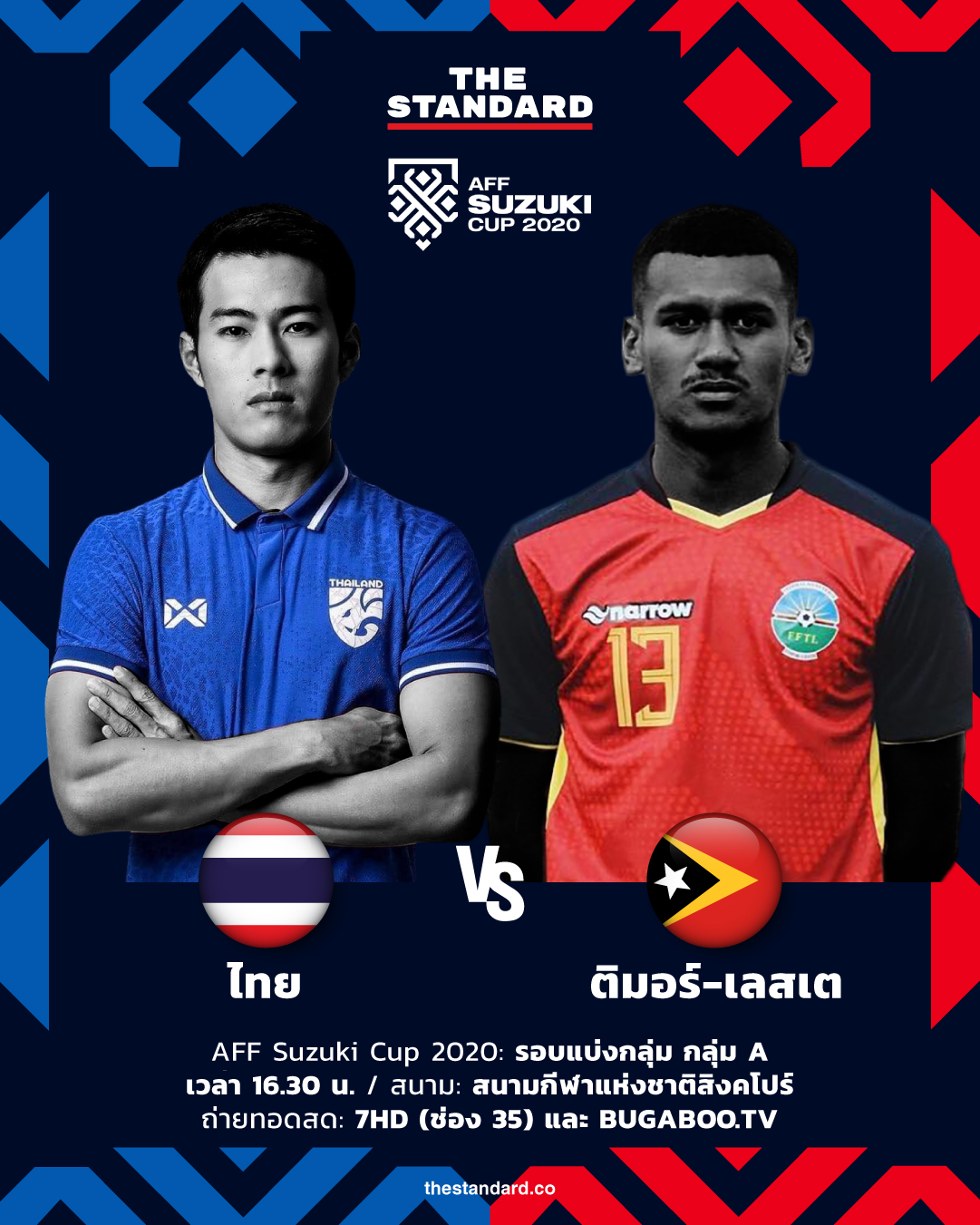 กำลังจะเริ่มขึ้นแล้วสำหรับศึกฟุตบอลชิงแชมป์อาเซียน 2020 หรือ AFF Suzuki Cup 2020 โดยวันนี้ (5 ธันวาคม) ทัพ ‘ช้างศึก’ ทีมชาติไทย ในมือกุนซือคนใหม่อย่าง มาโน โพลกิง มีโปรแกรมลงแข่งขันนัดเปิดสนามรอบแบ่งกลุ่ม กลุ่ม A พบกับทีมชาติติมอร์-เลสเต เวลา 16.30 น. แฟนบอลสามารถส่งกำลังใจและรับชมการถ่ายทอดสดทางช่อง 7HD (ช่อง 35) และ BUGABOO.TV