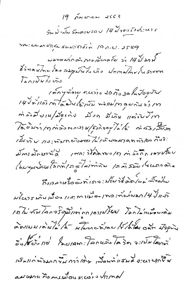 “ผมขอฝากคำถามเดียวครับว่า 14 ปีมานี้ ชีวิตคนไทยโดยรวมๆ เป็นอย่างไรบ้าง ประเทศไทยในสายตาโลกเป็นอย่างไรบ้าง