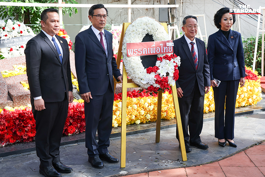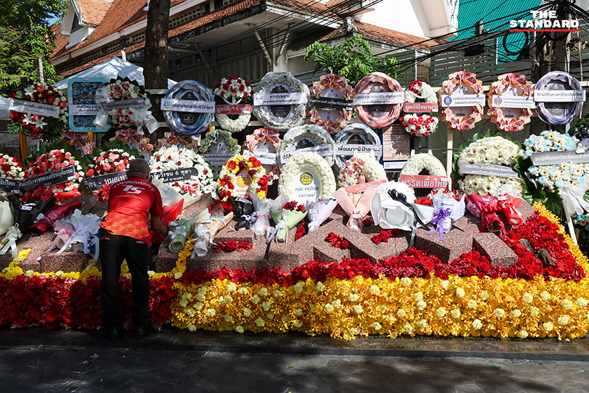 วันนี้ (6 ตุลาคม) มหาวิทยาลัยธรรมศาสตร์ จัดงานรำลึก 6 ตุลา ณ ประติมานุสรณ์ ‘ธรรมศาสตร์กับเหตุการณ์ 6 ตุลาคม 2519’ โดยมีบุคคลทางการเมือง ตัวแทนพรรคการเมือง ญาติวีรชนคนเดือนตุลา เข้าร่วม