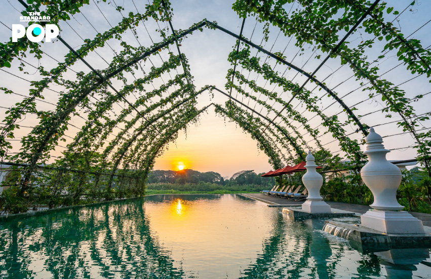 สระว่ายน้ำของ THANN Wellness Destination เป็นอีกหนึ่งจุดชมวิวสวยๆ เพราะจากบริเวณริมขอบสระน้ำ เมื่อมองไปจะเห็นวิวแม่น้ำน้อยที่สวยงาม บวกกับเงาสะท้อนบนพื้นน้ำในสระ ที่แทบไม่น่าเชื่อว่าเราอยู่ในจังหวัดพระนครศรีอยุธยานี่เอง แนะนำว่าควรมาถ่ายช่วงที่พระอาทิตย์กำลังตก เพราะท้องฟ้าจะเล่นเลเยอร์สีกันอย่างสวยงาม
