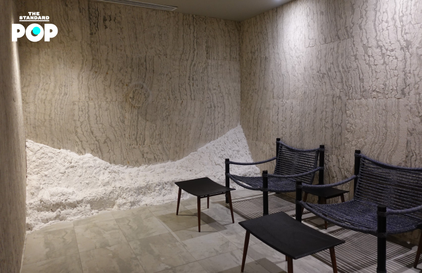 นวดตัวเสร็จแล้ว อย่าลืมแวะเข้าห้อง Salt Therapy Room เพื่อดีท็อกซ์สารพิษและสิ่งสกปรกในช่องทางเดินหายใจ เพราะที่นี่มีเครื่องพ่นไอเกลือที่มีอนุภาคเพียง 1-5 ไมครอน ที่ไม่ก่อให้เกิดการระคายเคืองเมื่อต้องสูดดมเป็นเวลานาน เพียงนั่งในห้องนาน 20 นาที เท่านี้ก็จะรู้สึกว่าหายใจได้โล่งสบายขึ้น ถ้าจะให้ดี อย่าลืมหยิบหนังสือเข้าไปอ่านสักเล่ม