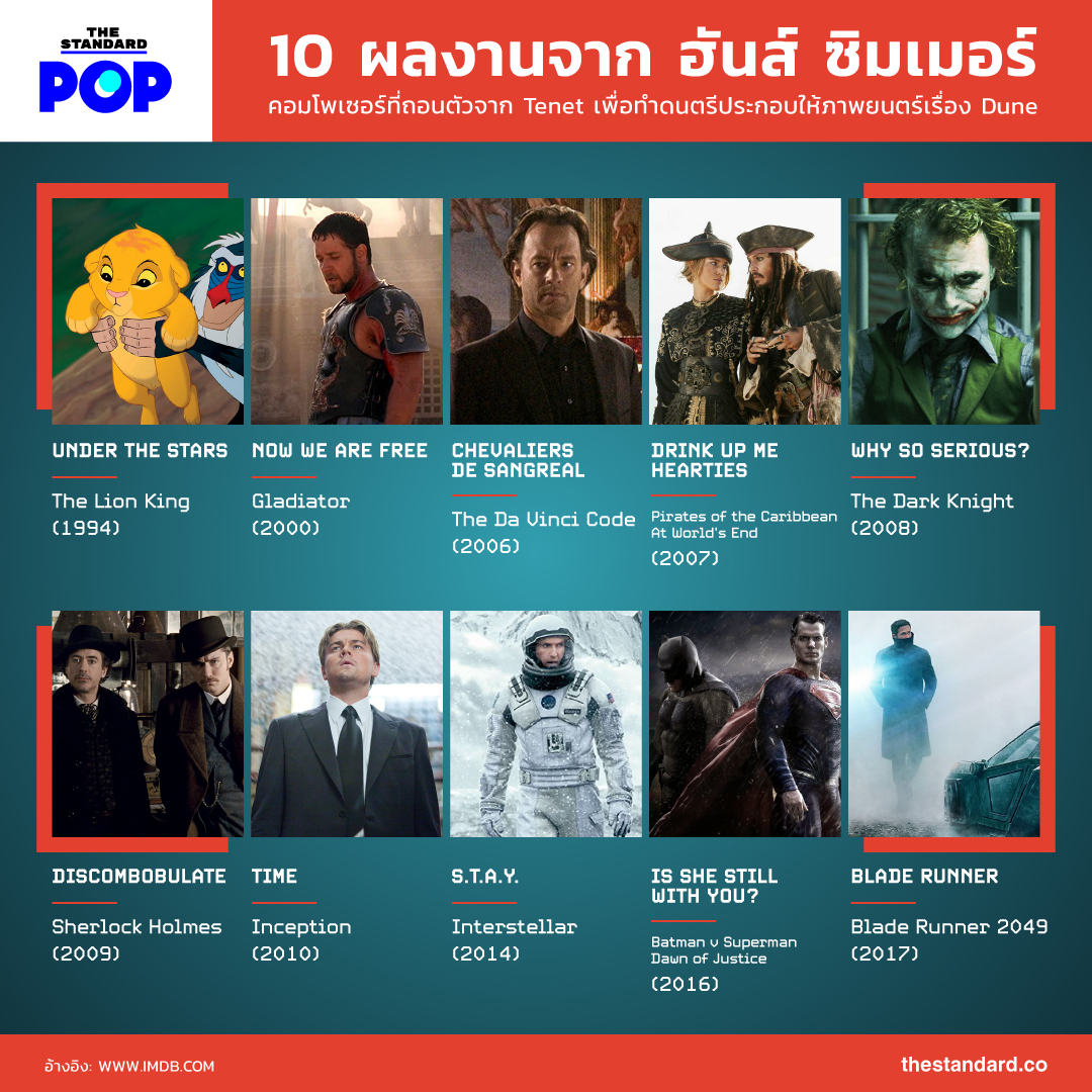 THE STANDARD POP ได้จัดเพลย์ลิสต์ 10 ดนตรีประกอบภาพยนตร์สุดยิ่งใหญ่จากปลายปากกาของฮันส์ ที่จะเปลี่ยนวันธรรมดาของคุณให้กลายเป็นวันสุดอีพิก อุ่นเครื่องรอฟังว่าบทเพลงที่เราจะได้ยินใน Dune จะเป็นอย่างไรในช่วงปลายปีนี้