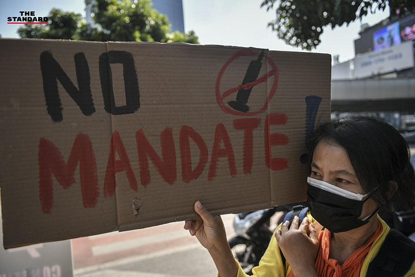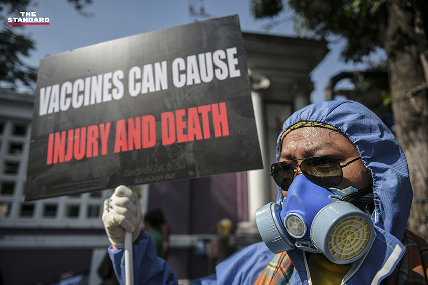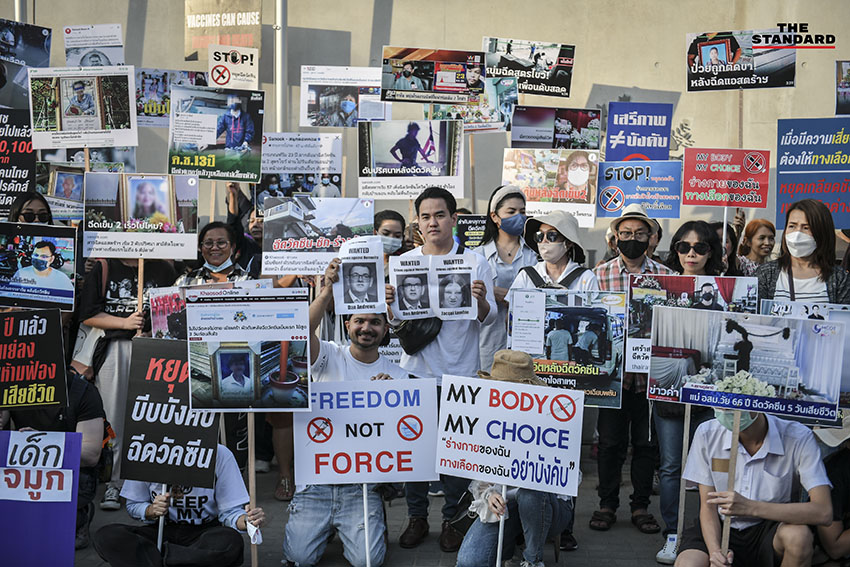 วันนี้ (4 ธันวาคม) กลุ่มที่เรียกตัวเองว่า ‘แนวร่วมต่อต้านการบังคับฉีดวัคซีน The Resistance THA’ นำโดย ม.ล.รุ่งคุณ กิติยากร, นพ.อรรถพล สุคนธาภิรมย์ ณ พัทลุง จัดกิจกรรม ต่อต้านการบังคับฉีดวัคซีน โดยนัดรวมตัวที่ BTS ศาลาแดง ถนนสีลม จากนั้นได้เคลื่อนขบวนมาปักหลักปราศรัยด้านนอกสวนลุมพินี ประตู 2 ฝั่งถนนวิทยุ