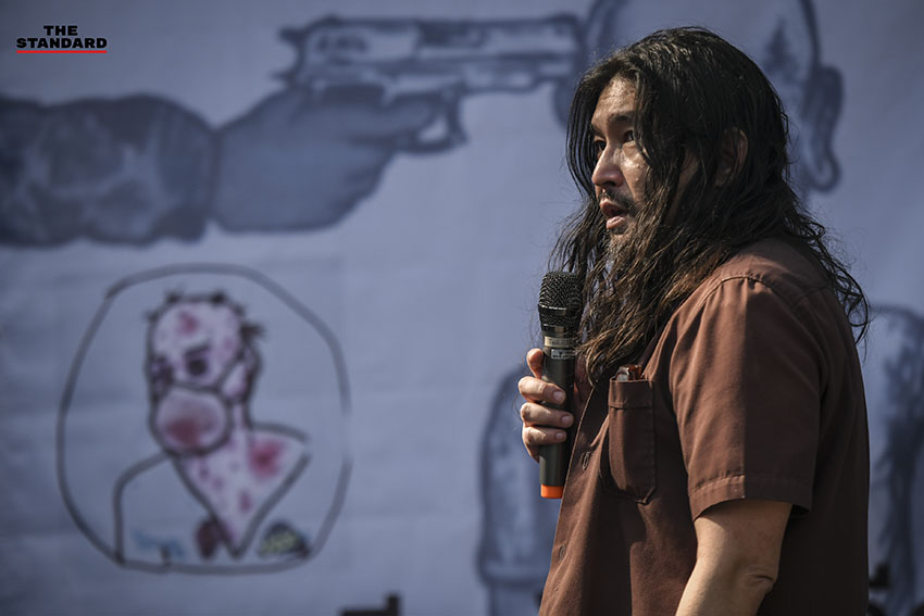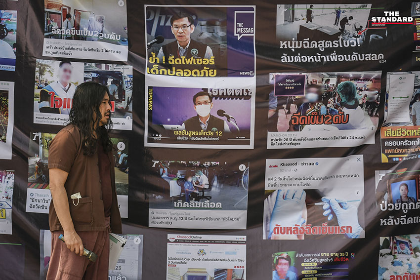 สำหรับบรรยากาศการทำกิจกรรมวันนี้มีการปราศัยถึงข้อมูลต่างๆ ในการฉีดวัคซีน รวมถึงการชูป้ายข้อความที่ปฏิเสธการบังคับการฉีดวัคซีน โดย ม.ล.รุ่งคุณได้ปราศัยถึงจุดยืนและการแสดงออกเพื่อต่อต้านการบีบบังคับการฉีดวัคซีนในรูปแบบต่างๆ และการใช้ประชาชนเป็นที่ทดลองยาโดยไม่คำนึงถึงผลกระทบในอนาคต ซึ่งทางกลุ่มไม่เห็นด้วย