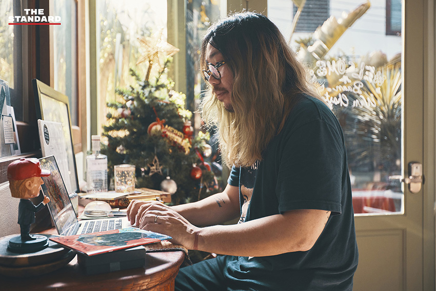 เป็ดเล่าให้เราฟังว่างานของเขาค่อนข้างยุ่งมาก เพราะมันคือการวางแผนให้กับศิลปินตั้งแต่เริ่มต้นกระบวนการจนผลงานออกมาสู่สาธารณะ ซึ่งปกติเขาก็เข้าออฟฟิศเหมือนกับคนทั่วไป ตอนนี้เข้าบ้างบางวัน แต่ส่วนใหญ่ก็ประชุมออนไลน์ เป็ดบอกว่าตัวเนื้องานค่อนข้างเหมือนเดิม แต่ความยากง่ายในการสื่อสารนั้นยากขึ้น ปัญหาอย่างหนึ่งที่เขาพบคือความรู้สึกที่ไม่สามารถแยกแยะเวลางานกับเวลาส่วนตัวได้ จากเดิมที่เวลางานจะเป็นตัวกำหนดว่าเราทำตอนไหนถึงตอนไหน แต่ตอนนี้อิสระขึ้น ไม่ต้องเสียเวลาเดินทาง แต่ถ้านอกเวลางานมีอะไรขึ้นมา เราก็ยังต้องรับผิดชอบอยู่